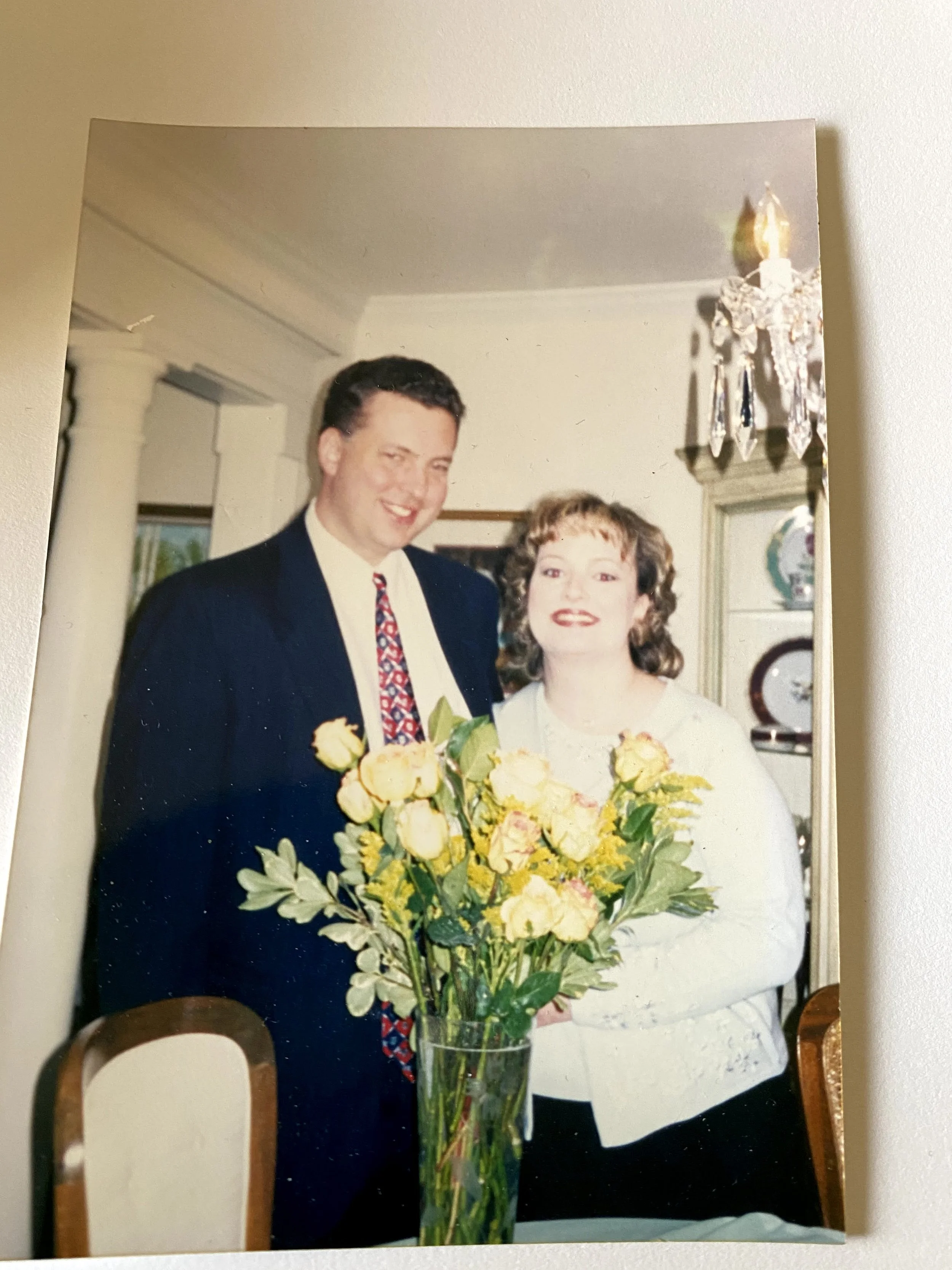 Photo of Glenn and me before we went to dinner on Valentine’s Day 2001.